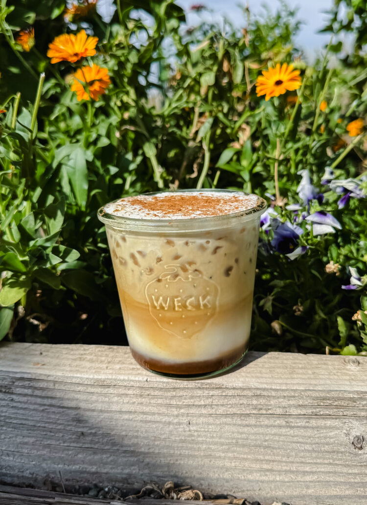 - In a small cup combine all the ingredients for the maple cold foam. Whisk together with a frother until mixture has thickened. Set Aside.