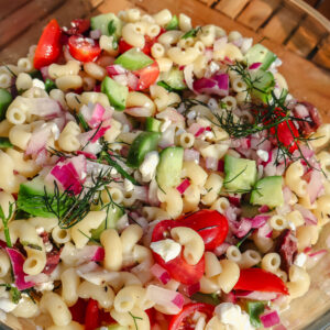 This Mediterranean-inspired pasta salad brings together the bold flavors of Greece in one easy-to-make bowl. Whether you’re prepping for a summer picnic, backyard BBQ, or meal-prepping for the week, this salad keeps well and tastes even better the next day.
