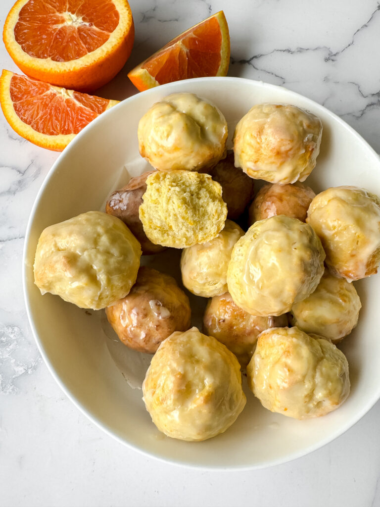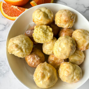 These soft and fluffy orange ricotta donut holes are made with no yeast and bake up perfectly in the air fryer or oven. Topped with a sweet citrus glaze they are irresistible.