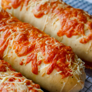Bake for 15–18 minutes, until the loaves are golden brown and the cheese is melted and bubbly. Allow the bread to cool for at least 30 minutes before slicing.